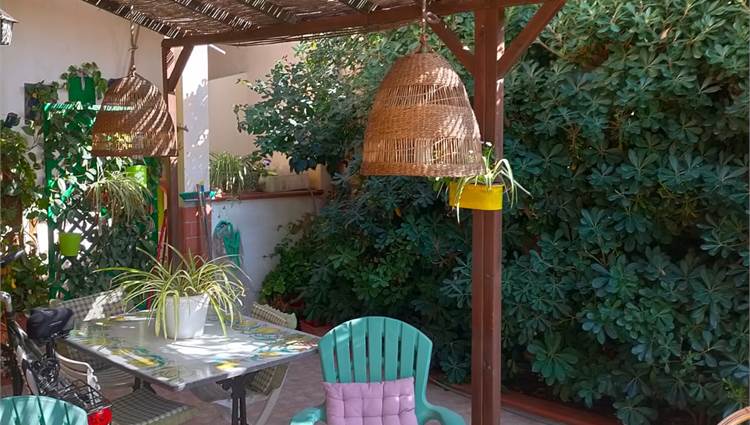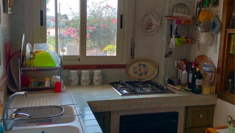 Cucinotto con accesso diretto a una veranda esterna attrezzata con cucina, ideale per pranzi e cene all’aperto, immersi nella brezza marina