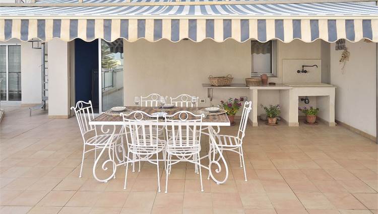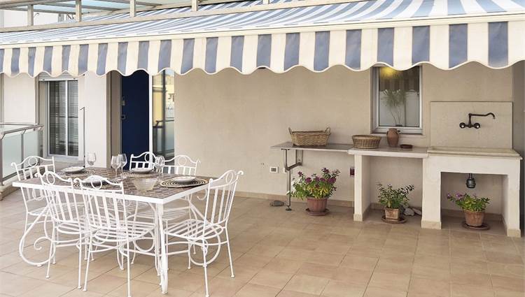 Veranda esterna di circa 40 m², perfetta per momenti di relax o cene all’aperto