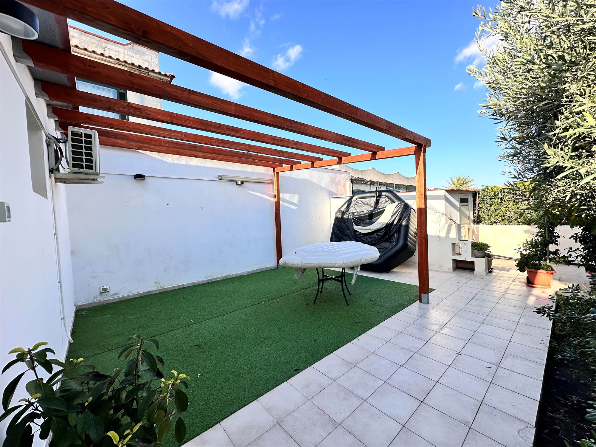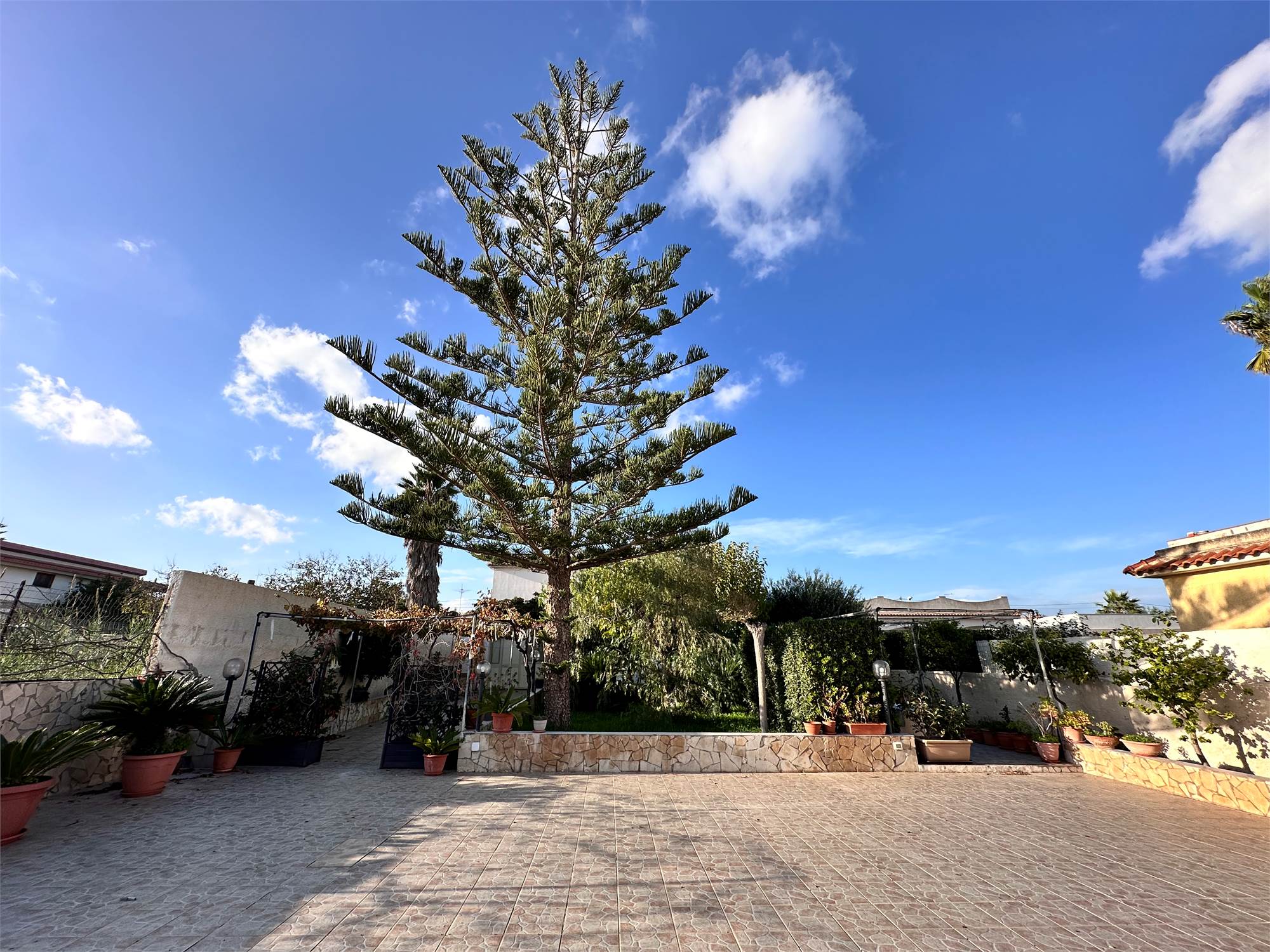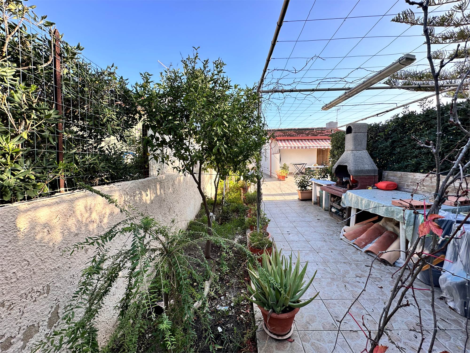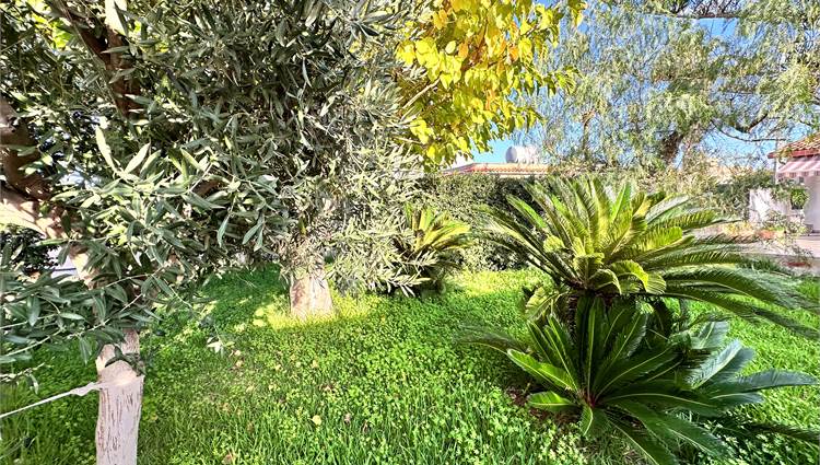 Il terreno di pertinenza, di circa 800 mq, è in parte pavimentato e in parte lasciato a giardino, curato con attenzione e pensato per godere appieno degli spazi esterni.