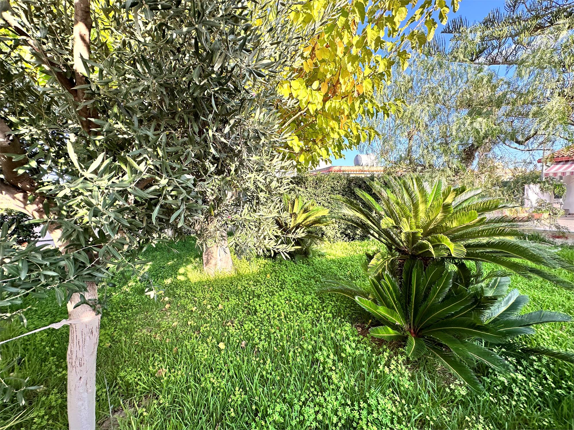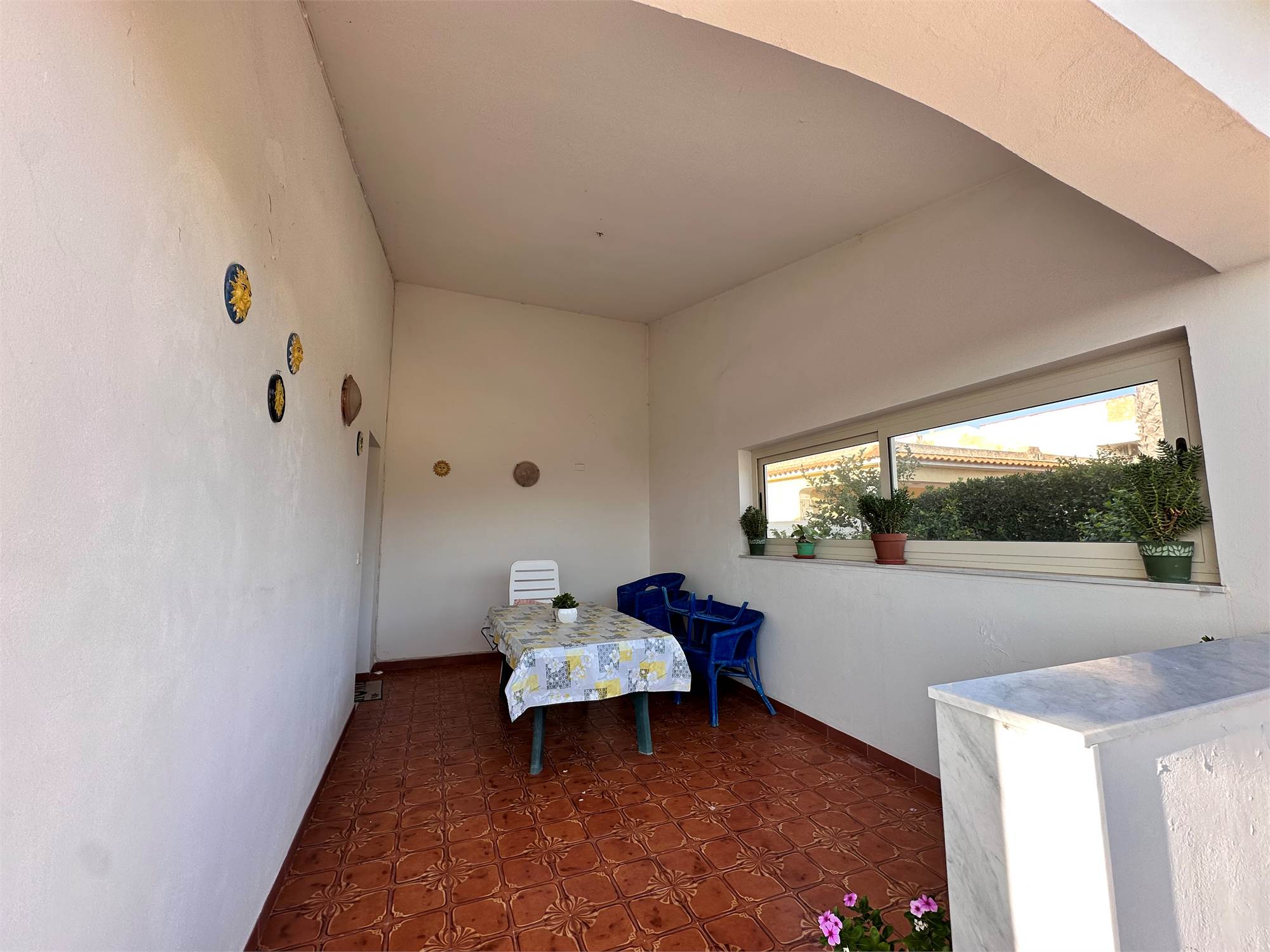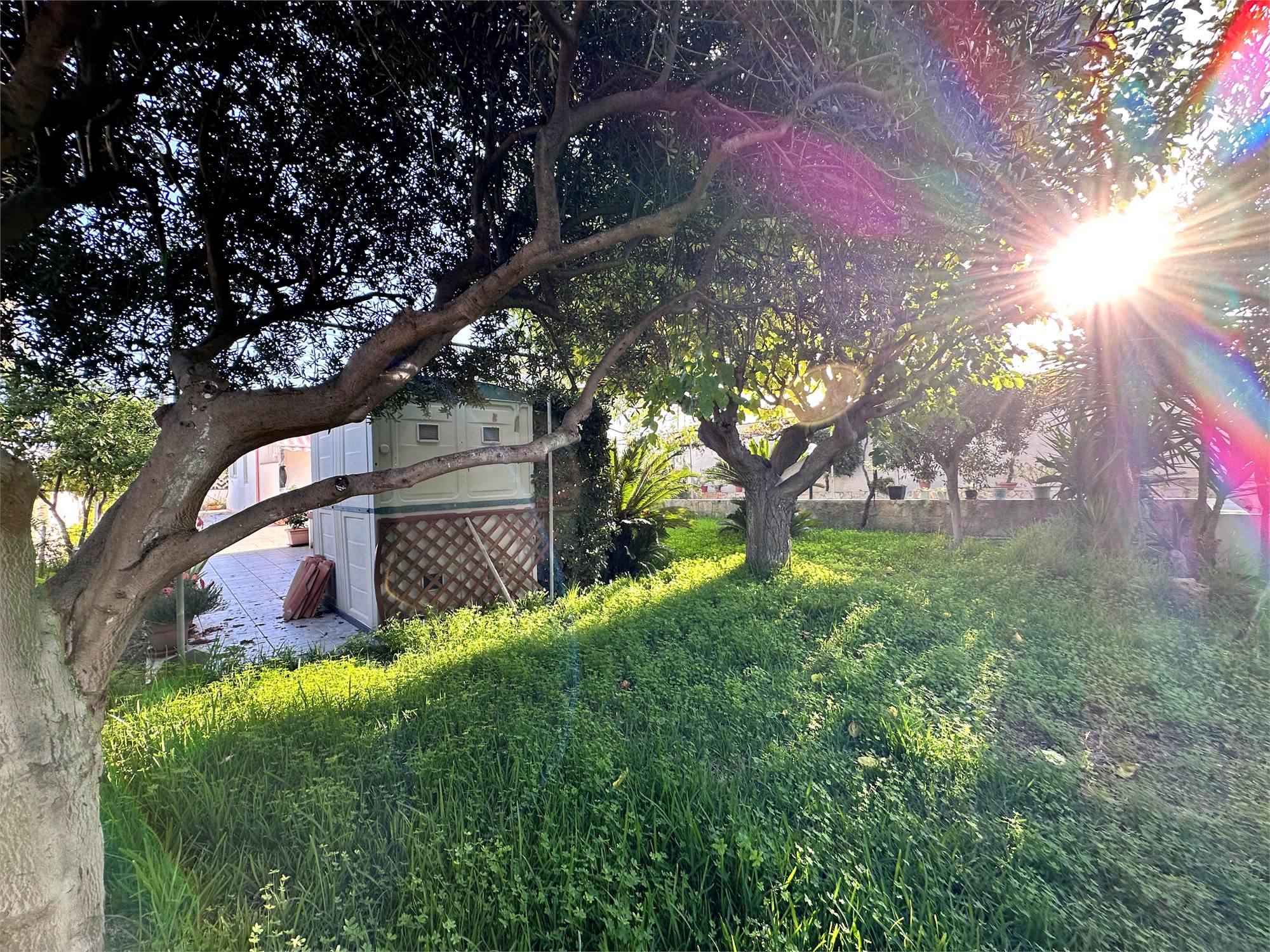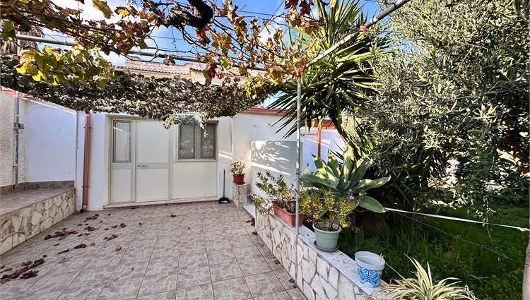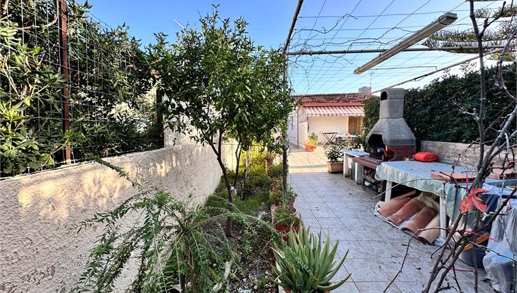 Il terreno di pertinenza, di circa 800 mq, è in parte pavimentato e in parte lasciato a giardino, curato con attenzione e pensato per godere appieno degli spazi esterni.