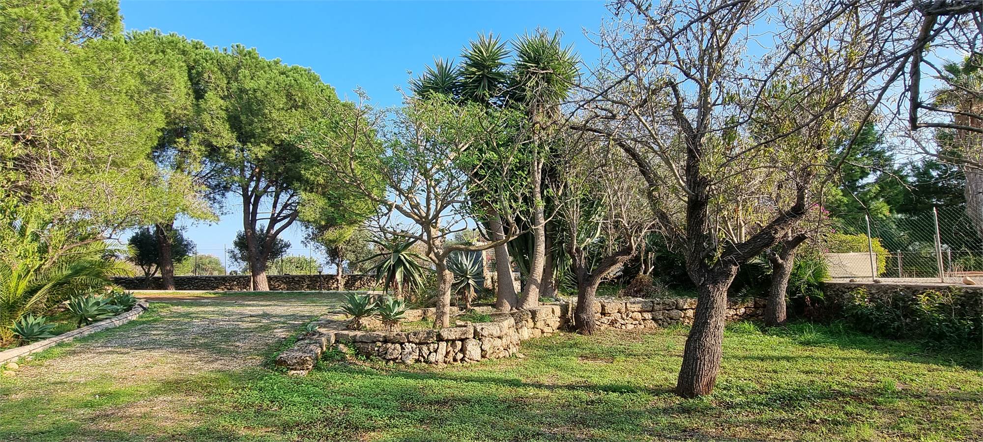 Il terreno, immerso in un paesaggio incontaminato, è caratterizzato da mandorli, ulivi e alberi da ombra come ficus, carrubo, pino marittimo e falso pepe. La posizione, lontana dalle zone urbanizzate, lo rende perfetto sia per uso residenziale sia per progetti turistici sostenibili come glamping, eco-campeggio, B&B o home restaurant.