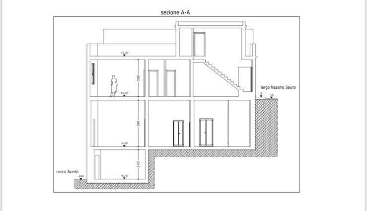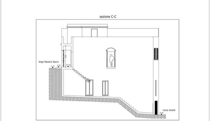 La proprietà, che si estende per circa 300 m², si sviluppa su due livelli e dispone di un grande terrazzo panoramico sovrastante. L’edificio presenta due ingressi su strade differenti ed è suddiviso in due unità abitative autonome: una già ristrutturata e pronta all’uso, l’altra da rinnovare completamente.
