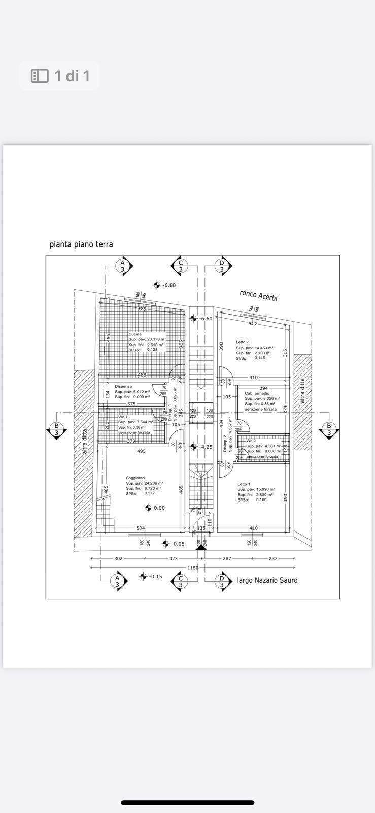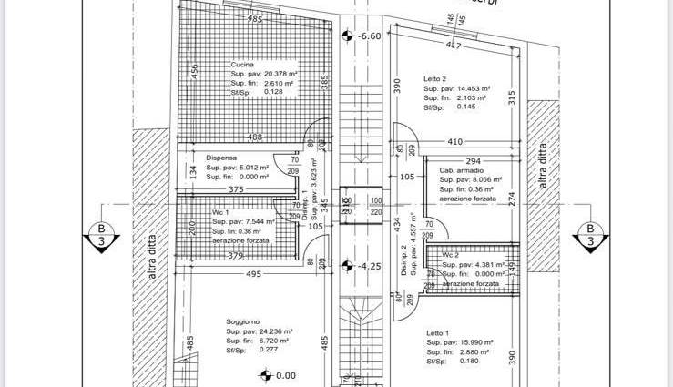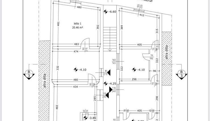 Al livello inferiore, con accesso indipendente da un’altra strada, si trova il secondo appartamento di circa 150 m², insieme a un garage di 23 m². Questa porzione necessita di una ristrutturazione totale ed è attualmente composta da sei vani, un corridoio e due bagni.
