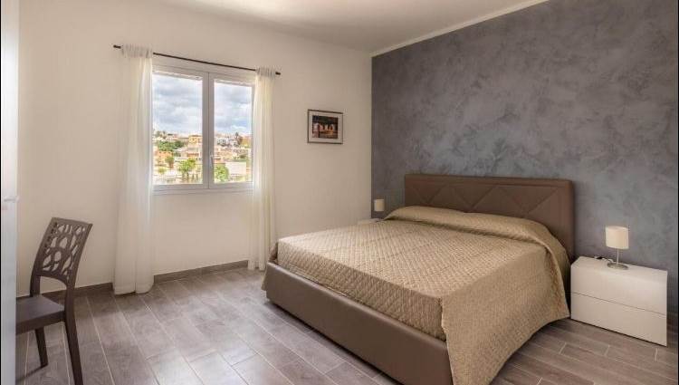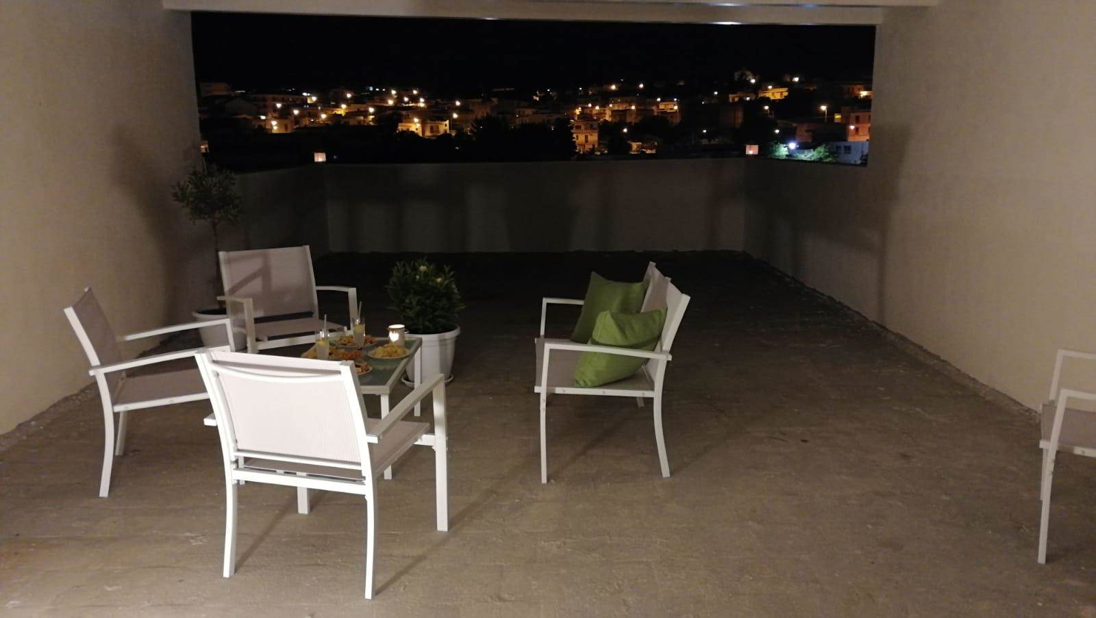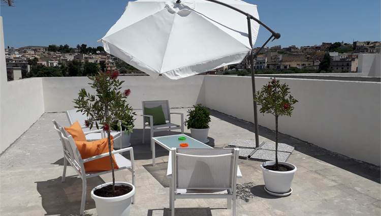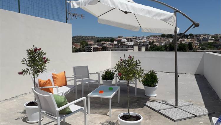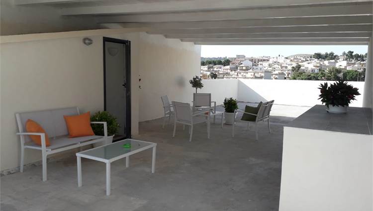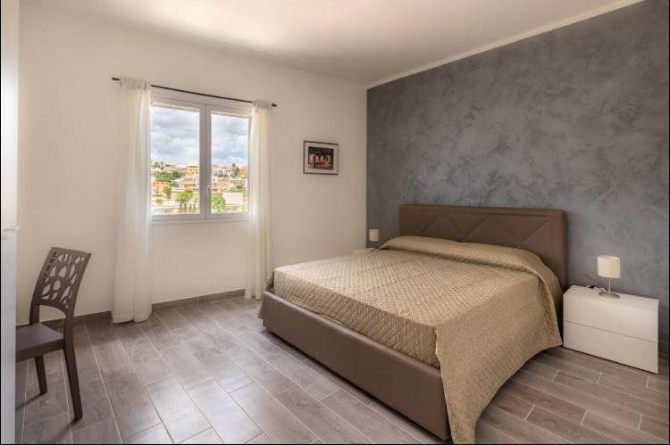 Situata al piano terra (circa 150 m²), accoglie una luminosa zona living collegata alla cucina-pranzo, un bagno di servizio e tre spaziose camere matrimoniali, ciascuna dotata di bagno privato. Una scala interna conduce al terrazzo superiore, di circa 150 m², dal quale si gode una splendida vista sulla piazza antistante e su via Fazello.