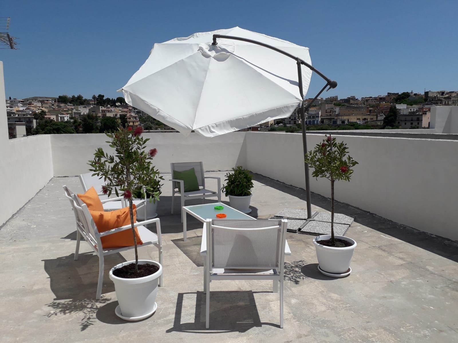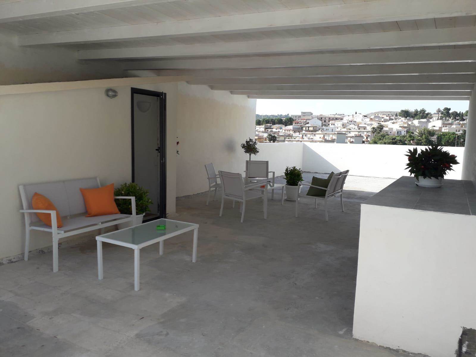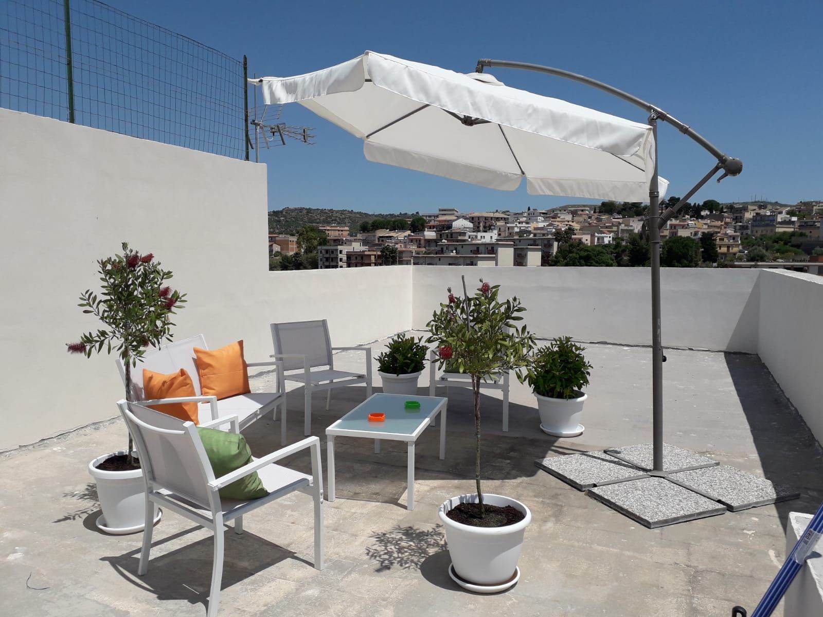 Situata al piano terra (circa 150 m²), accoglie una luminosa zona living collegata alla cucina-pranzo, un bagno di servizio e tre spaziose camere matrimoniali, ciascuna dotata di bagno privato. Una scala interna conduce al terrazzo superiore, di circa 150 m², dal quale si gode una splendida vista sulla piazza antistante e su via Fazello.
